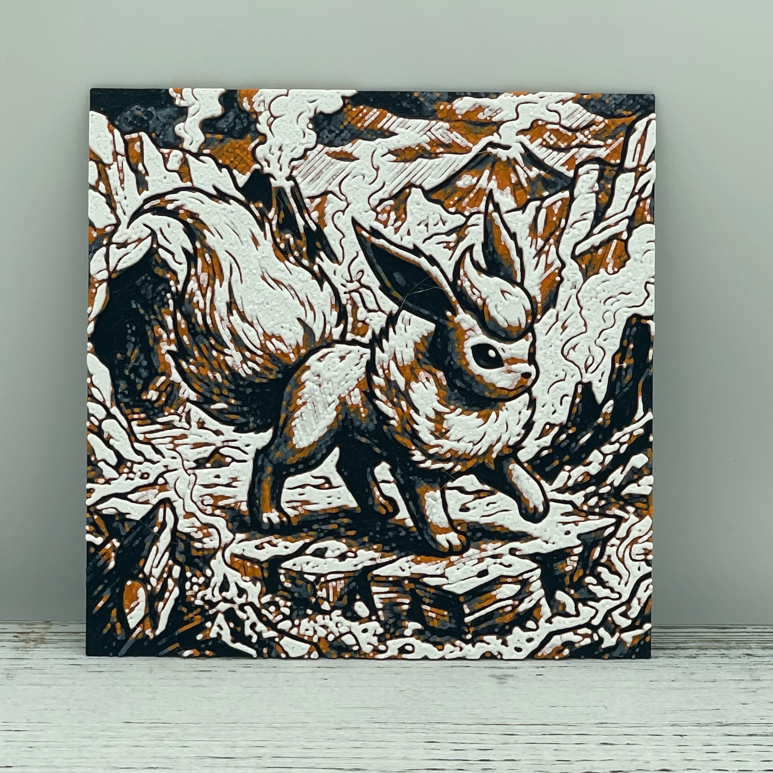 This fiery fox design features flowing shapes and bold contrast, capturing a sense of motion and heat through layered HueForge texture. It’s a striking way to add warmth and personality to your interchangeable display.